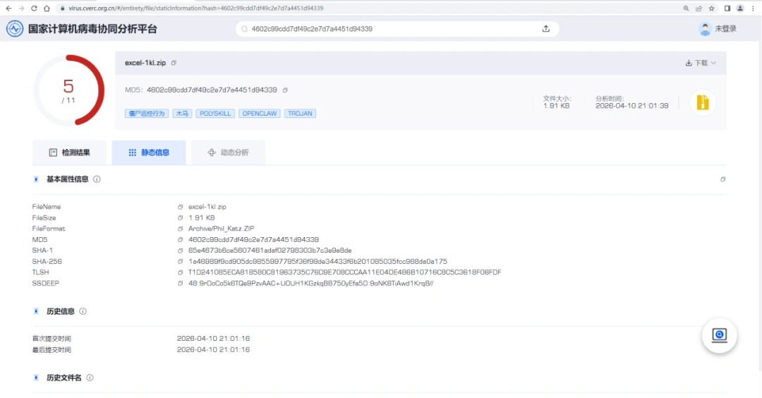 3. 针对类似此次传播的病毒技能包文件,个人用户或单位网络管理员可通过表1或附录中的文件HASH,从国家计算机病毒协同分析平台(https://virus.cverc.org.cn)检索相关信息,进行有针对性的防范。