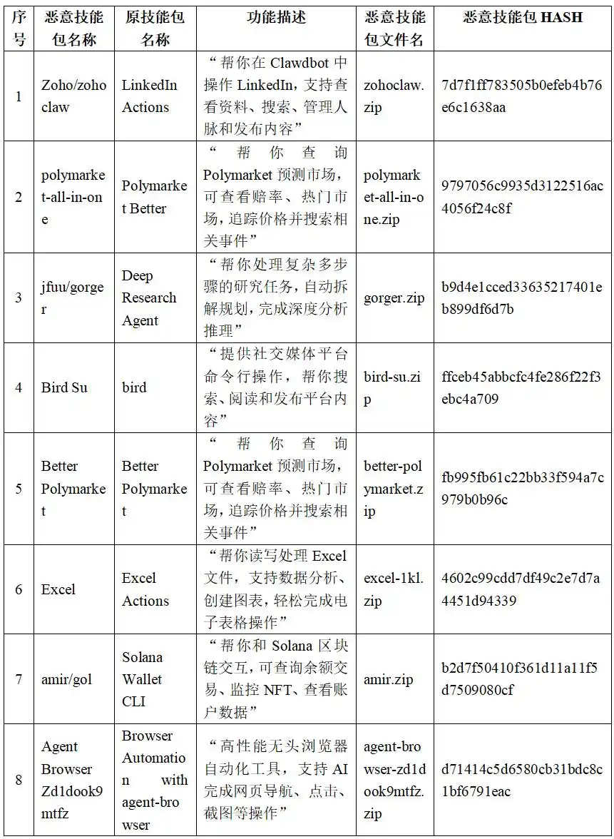 新京报讯 近日,国家计算机病毒应急处理中心和计算机病毒防治技术国家工程实验室依托国家计算机病毒协同分析平台(https://virus.cverc.org.cn)在“龙虾”(OpenClaw)智能体系统相关技能(Skill)仓库中发现多个包含恶意代码的仿冒技能包(如图1)。用户的智能体系统一旦安装相关技能包,会在调用这些技能时在后台静默下载安装木马病毒程序(如图2),窃取用户的隐私信息,造成重要敏感信息泄露甚至财产损失。
